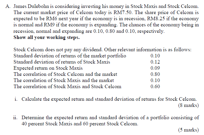 Solved A James Dulebohn Is Considering Investing His Money Chegg Com