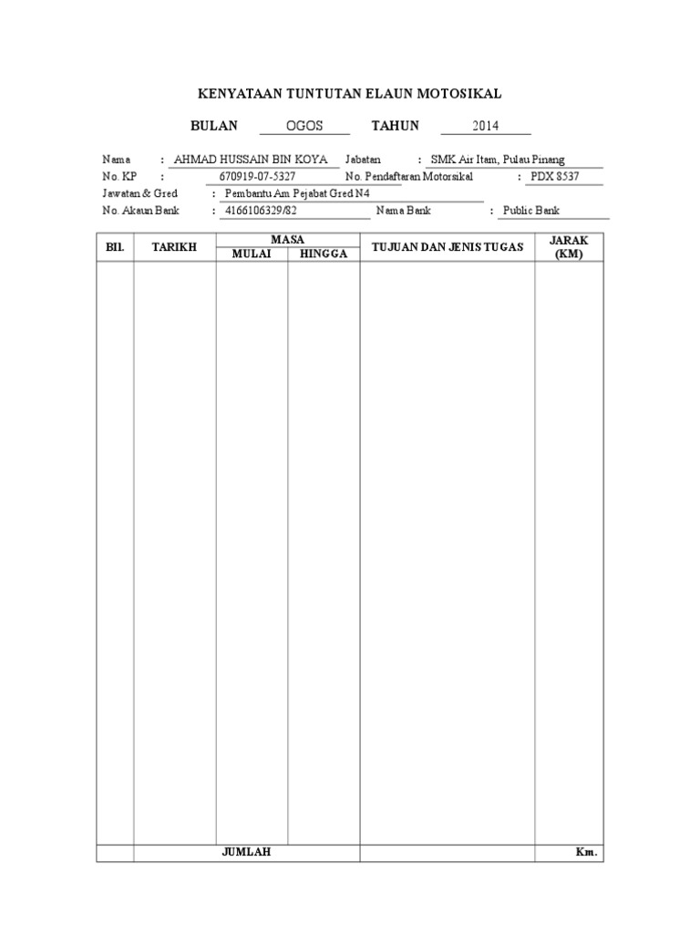Kenyataan Tuntutan Elaun Motosikal Pdf